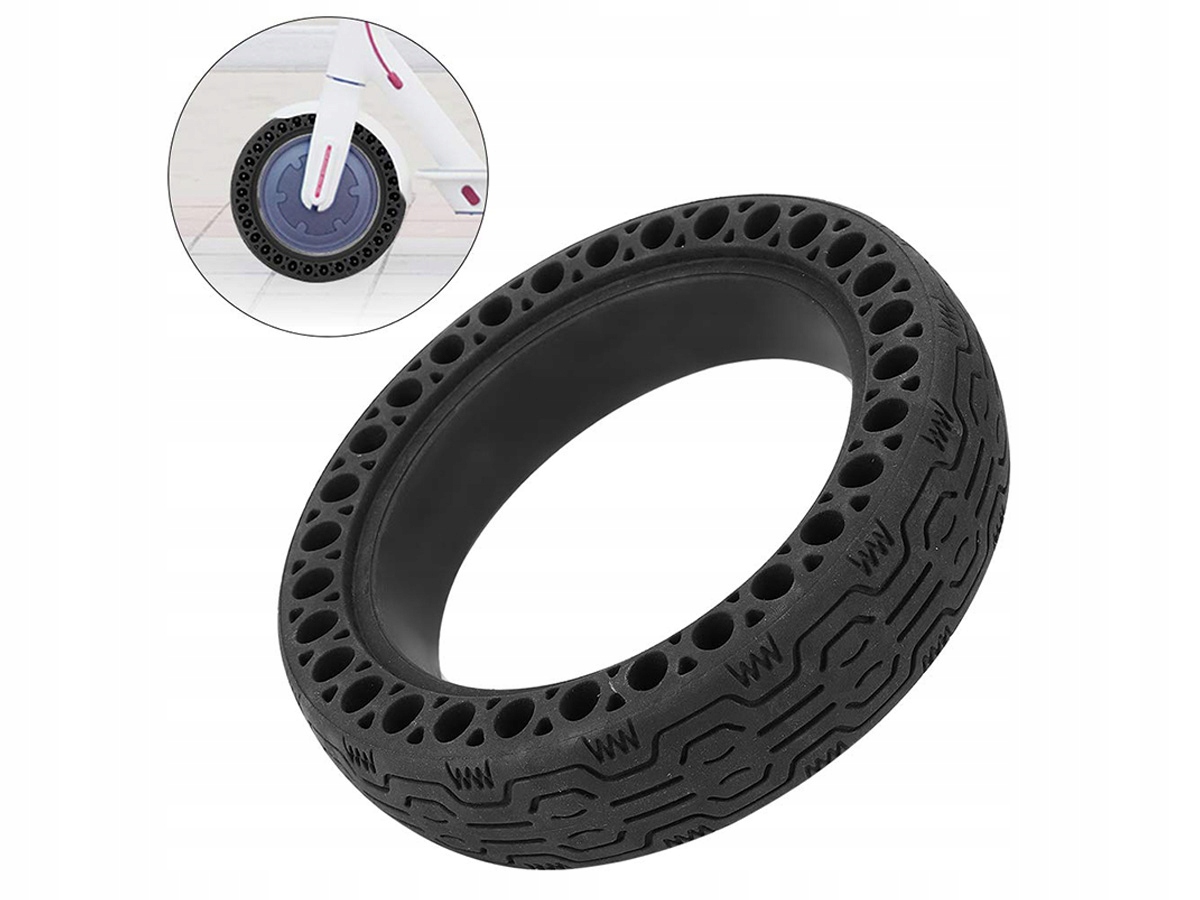 Суцільні безкамерні шини Alogy розміром 8,3 дюйма для скутерів Xiaomi Mija M187, M365, M365 Pro, Motus Scooty 8.5 виготовлені з міцної гуми, нетоксичні та стійкі до зношування. Вони ідеально поглинають нерівності завдяки тому, що вони були правильно просвердлені та заповнені.