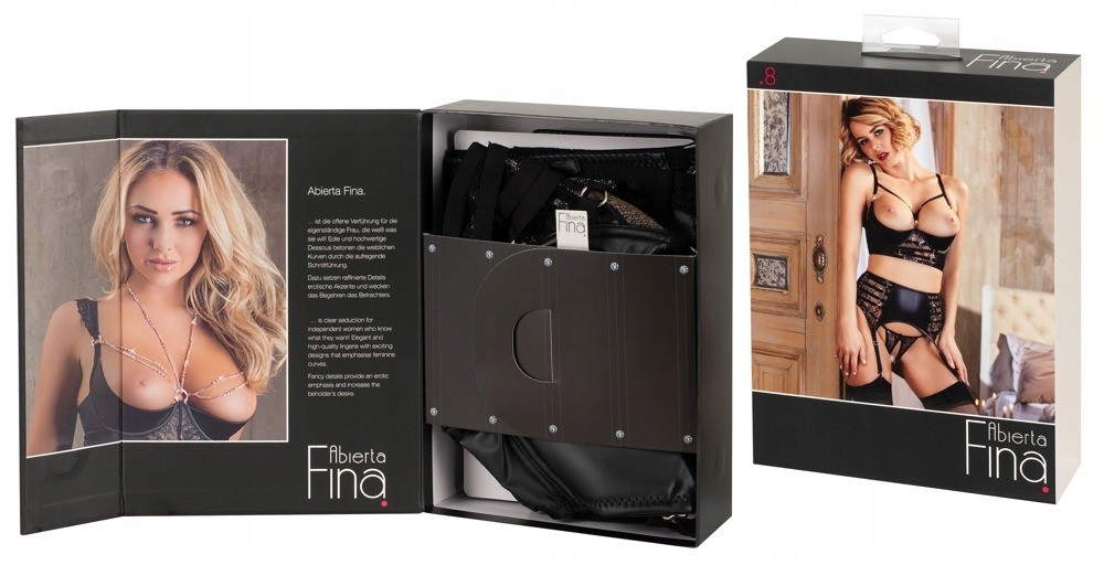- Пояс під підв'язки в тон і привабливі трусики з вирізами завершують цей еротичний набір.