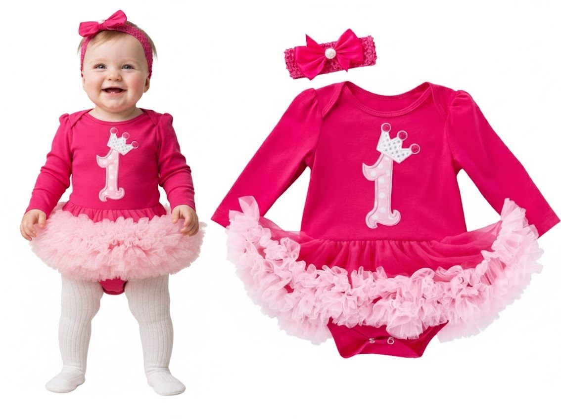 Комплект боді для немовлят зі спідничкою-тюль на рік та пов'язкою на голову