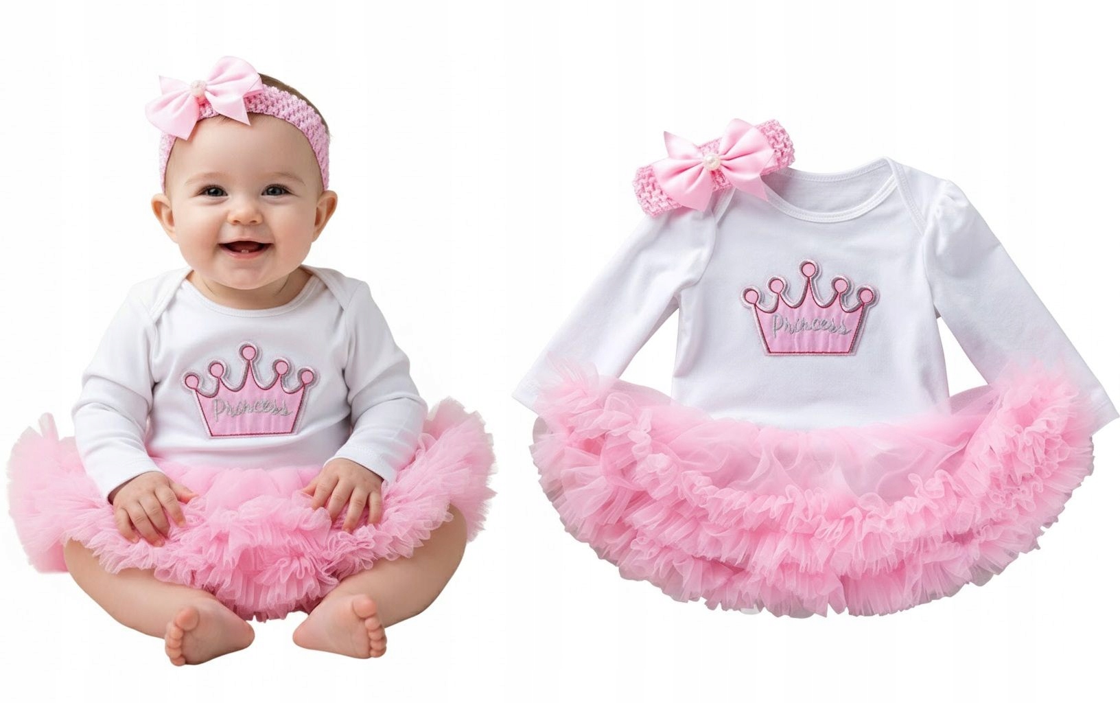 Комплект боді для немовлят зі спідничкою з тюлю та пов'язкою на голову, розмір 73