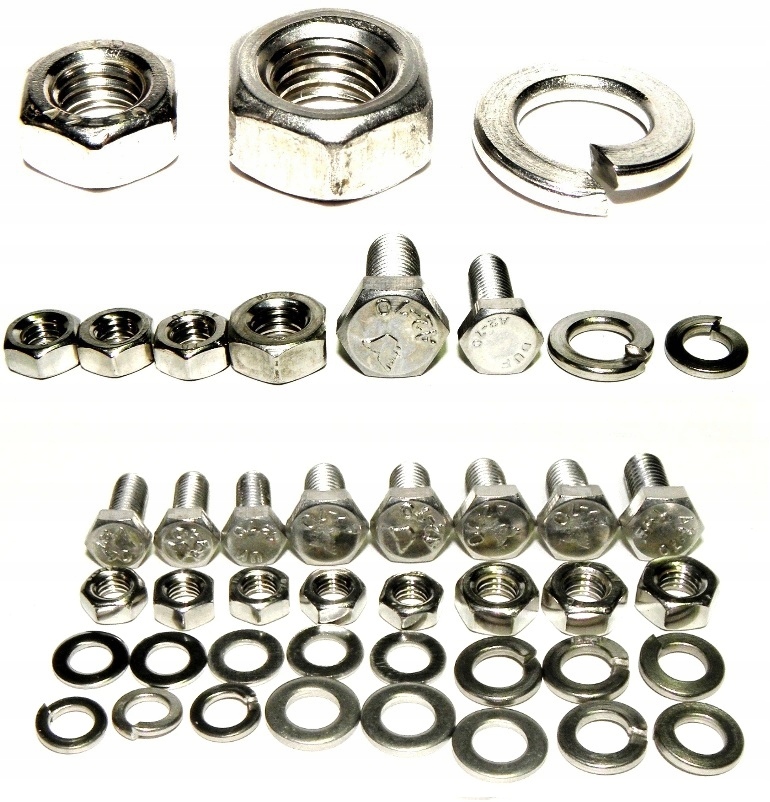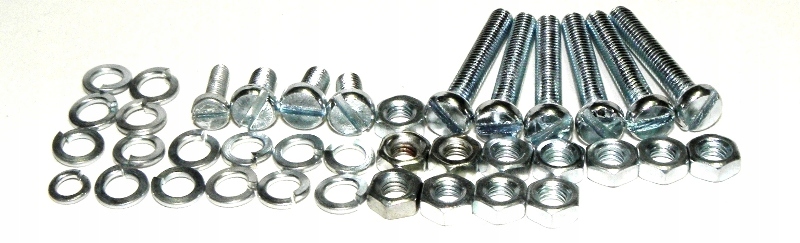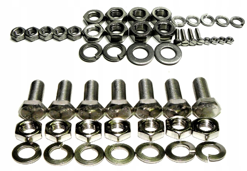 Набір складається з елементів з хромонікелевої нержавіючої сталі класу A2 70. Набір включає гвинти, гвинти, гайки та шайби, розділені на 16 окремо упакованих груп, що забезпечує безпроблемну збірку окремих компонентів мотоцикла. У групі ПЕРЕДНЯ ВИЛКА додані гайки з різним кроком різьблення для нагвинчування підвіски за рахунок наявності 2-х типів різьби в підвісці мотоцикла WFM M06.