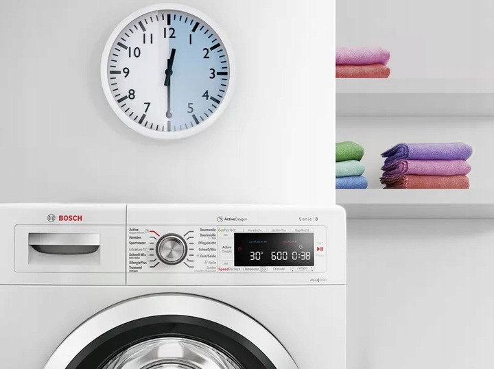 - Великий і чіткий дисплей дозволяє відкласти закінчення роботи на 24 години, змінити температуру, змінити швидкість віджиму та вказує час, що залишився до завершення прання