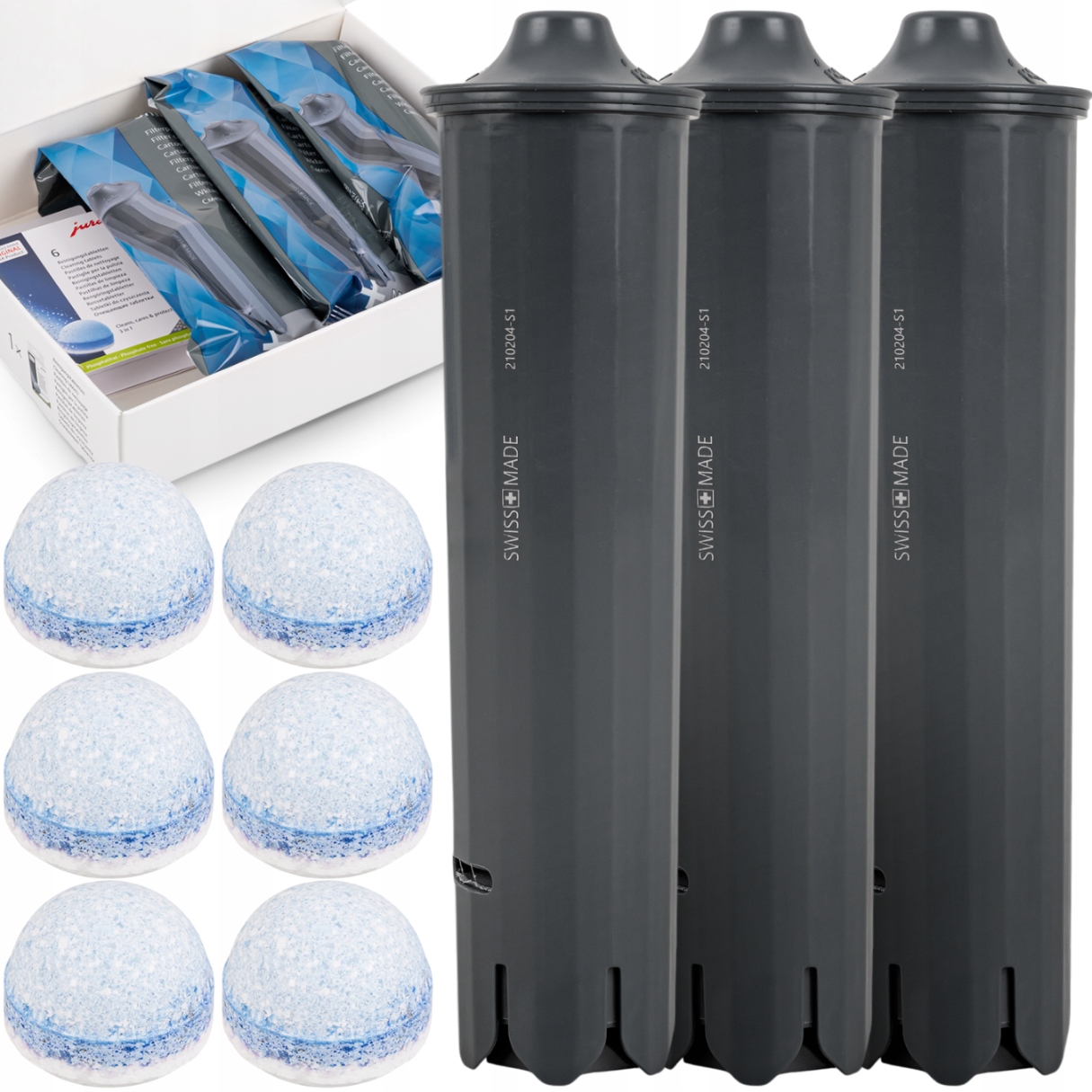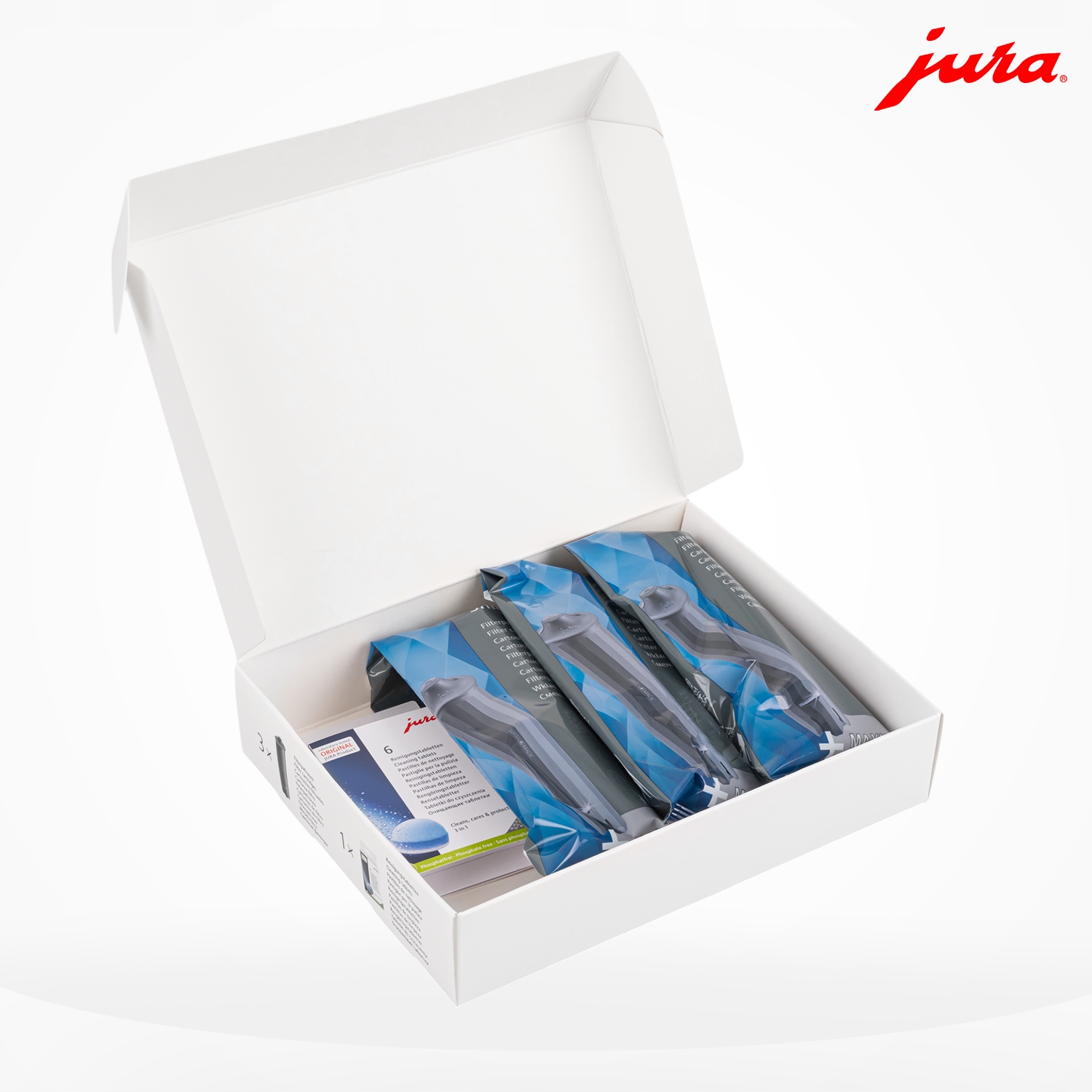таблетки для чищення, що містяться в наборі , працюють на трьох етапах: вони видаляють кавові олії та родовища, промивають залишки та покривають захисну систему шаром, що запобігає повторному розладу бруду. Це засоби, спеціально розроблений для jura Express , що забезпечує надійну роботу пивоварної системи та гарантує, що кожна чашка буде смакувати так само ідеально, як перша.