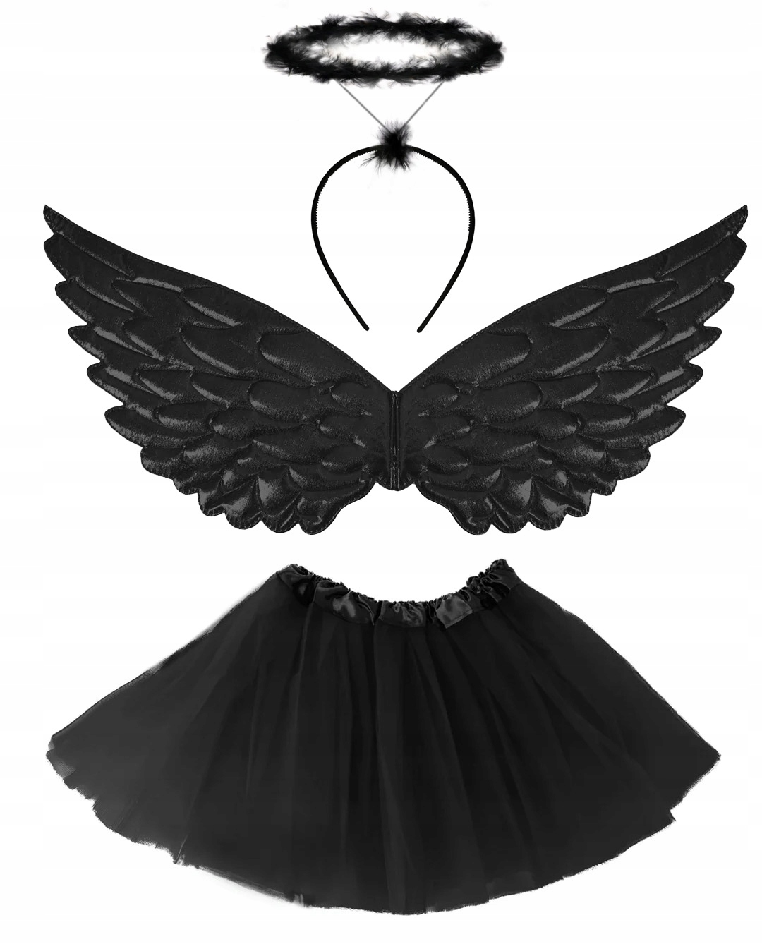 КОМПЛЕКТ ЧОРНИЙ КОСТЮМ ПАДШОГО АНГЕЛА КРИЛА ЧОРНА СПІДНИЦЯ ПОВ'ЯЗКА НА ГОЛОВУ НІМБ