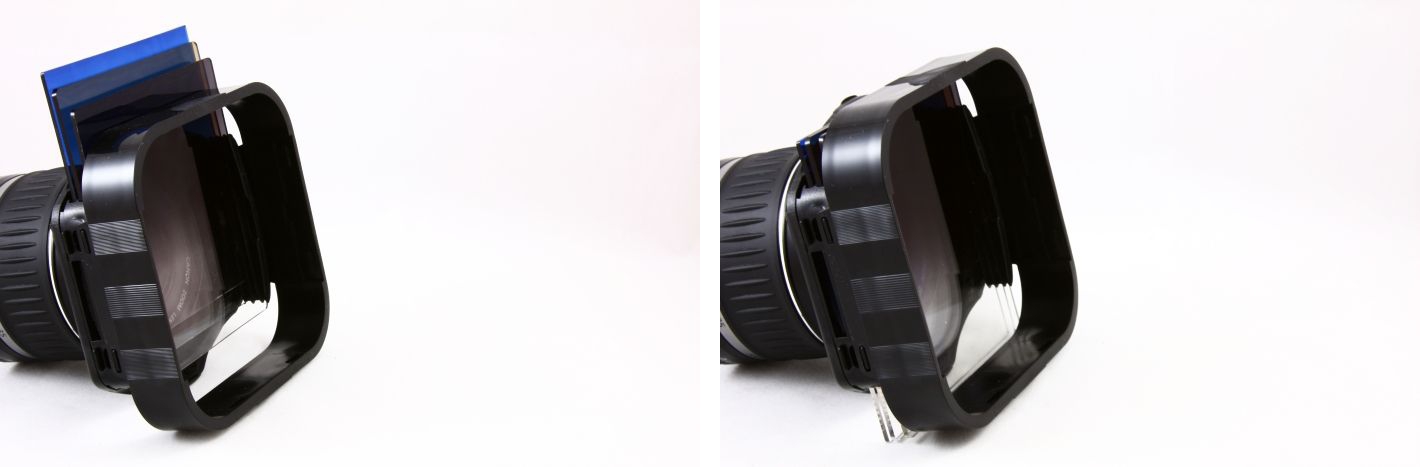 - в одному тримачі ми можемо прикріпити до трьох квадратних фільтрів, один круглий фільтр, наприклад, поляризаційний, і сонцезахисний козирок,