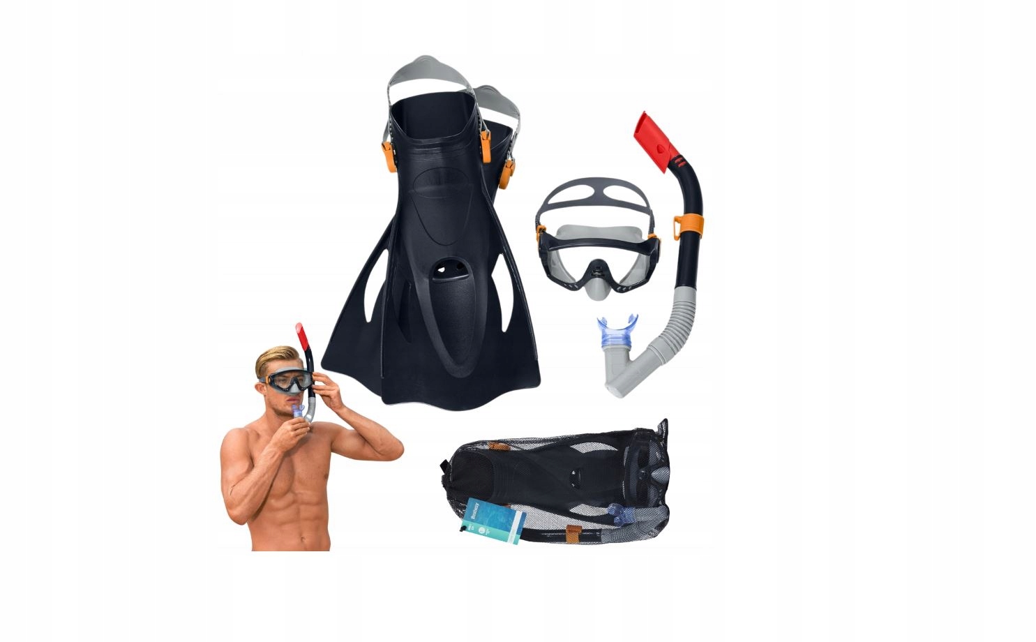 - У набір входить: маска з трубкою та ластами BESTWAY (41-46)