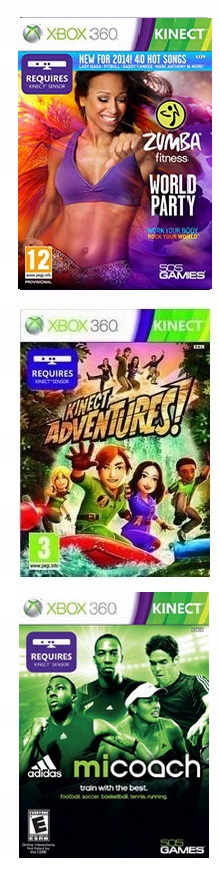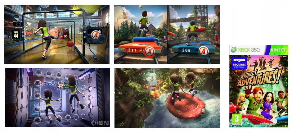 kinect Adventures! Це набір дванадцяти аркадних ігор, які використовують контролер Kinect. Серед них ми знайдемо, серед інших Понтон рафтинг, перехресний біг, популярний злодій та їзда на фургоні. Приз: статус майстра пригод! Стрибайте і уникайте маршрутів, що ведуть через швидкі потоки та вимогливі перешкоди. Використовуйте свої навички, щоб врятувати протікаючу підводну лабораторію. Порушайте свої досягнення та діліться ними в Інтернеті, позуючи перед об'єктивом або створюючи пам’ятки в прямому ефірі. Виклик пригоди чекає! І бажаючи спалити трохи калорій вдома - під керівництвом професійного коучингу ми практикуємо відомі спорт перед екраном телевізора / щоб вибрати теніс, баскетбол, футбол або американський футбол (гра на 2 DVD)