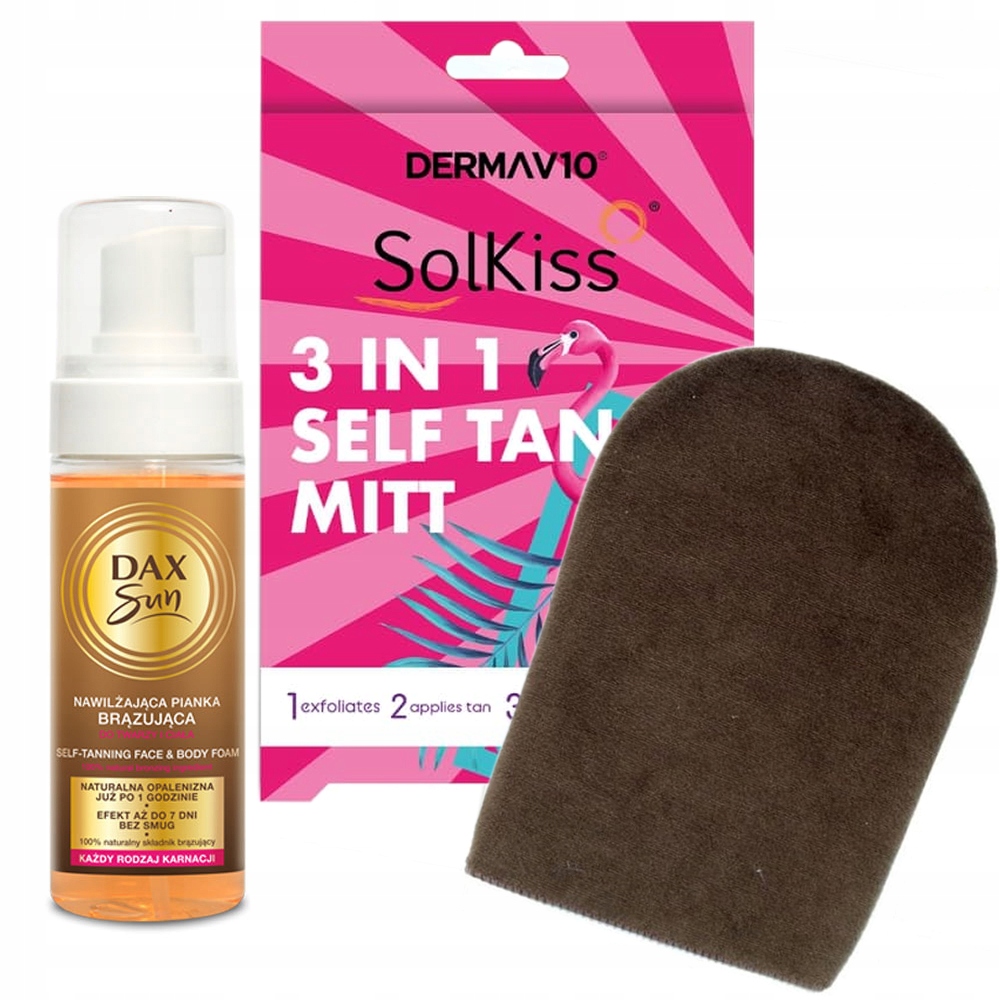 Зволожуюча бронзуюча пінка DAX Sun set для обличчя та тіла - усі типи шкіри + рукавичка для автозасмаги Derma V10
