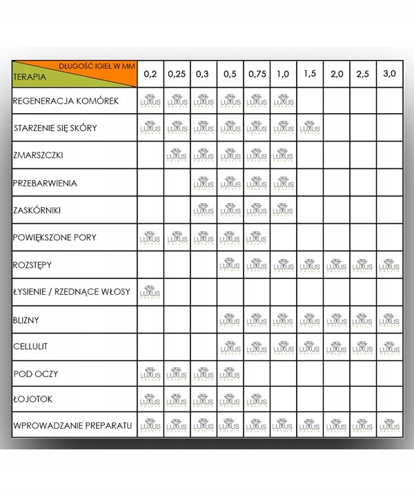 720 голок довжиною 1 мм - така довжина найчастіше використовується під час догляду за обличчям. Лікування, спрямоване проти зморшок і змін кольору, для поліпшення стану шкіри. Обробки такою довжиною голок можна проводити з інтервалом хв. 7 днів.