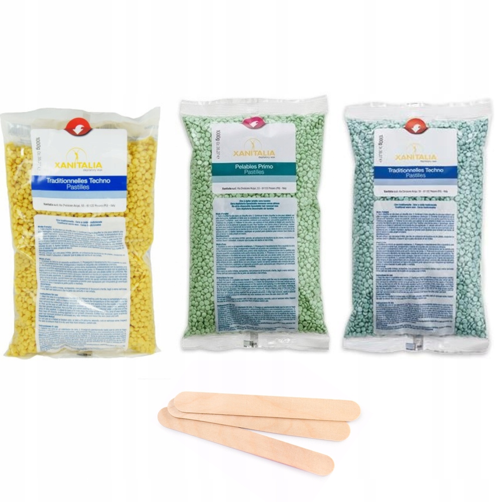 Набір восків для депіляції - 3x тверді воскові краплі 1кг + шпателі 100шт.