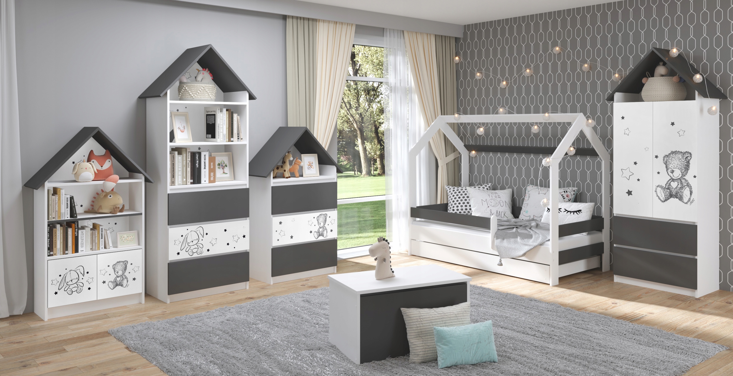 Комплект дитячих МЕБЛІВ ліжко БУДИНОК 160х80 НАБІР 6 предметів АНТРАЦИТ ТЕДДІ