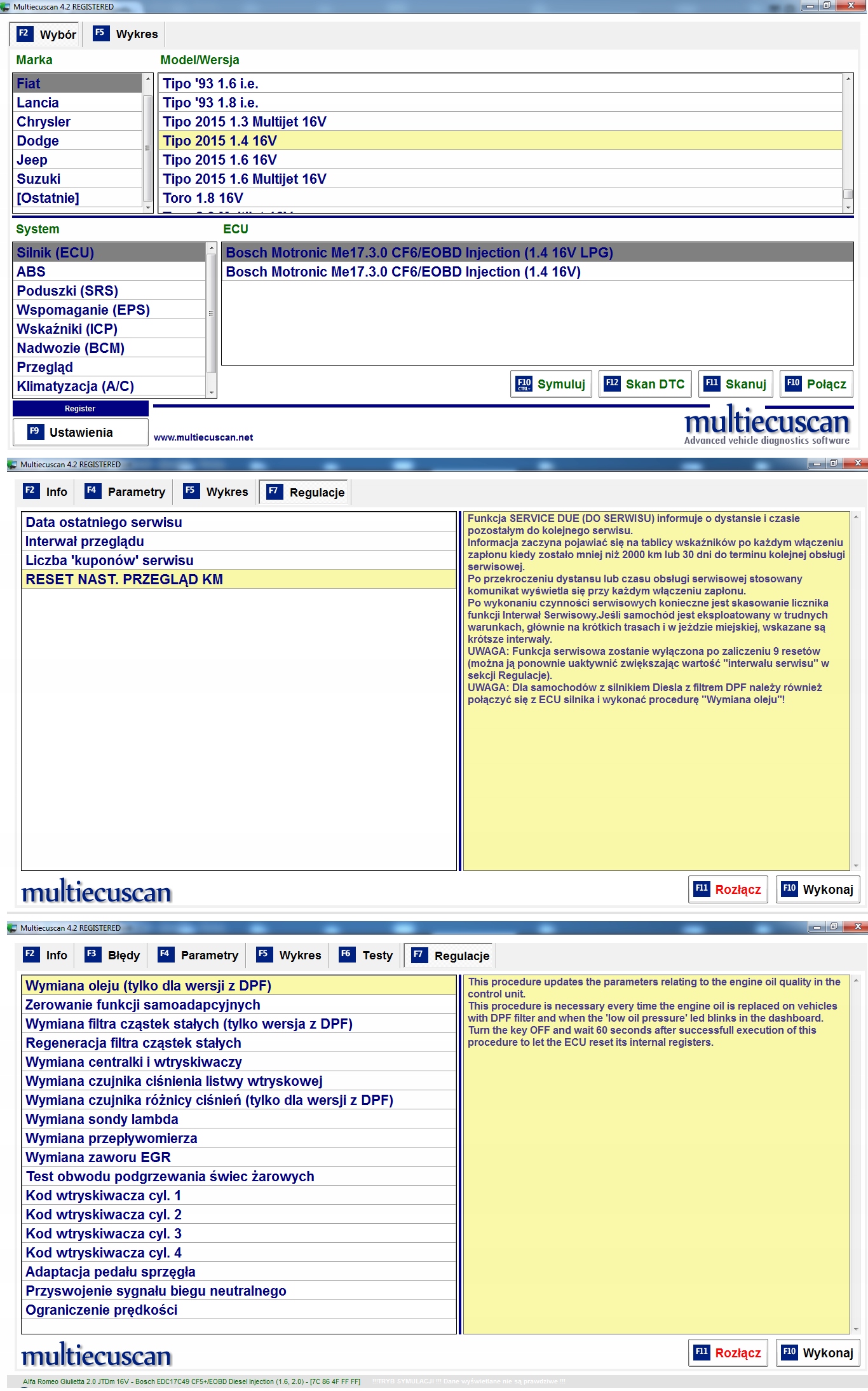 Програма MultiEcuScan дозволяє виконувати повну діагностику в FIAT, ALFA, LANCIA та інших моделях групи FCA