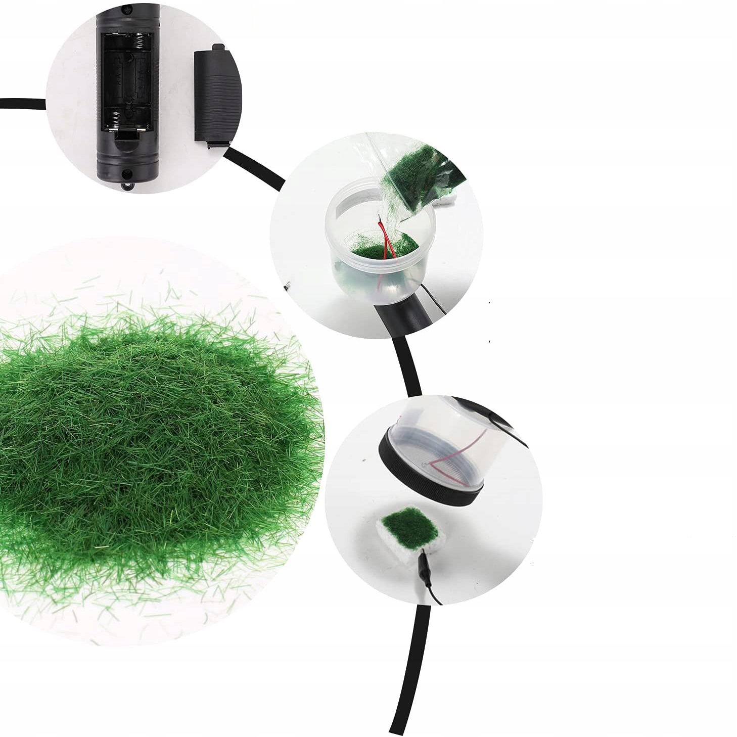 🌿 Набір електростатичного аплікатора для трави: Електростатичний аплікатор для трави призначений для самостійного нанесення трави в модельних сценах. Ідеально підходить для моделей насаджень, архітектурних моделей, моделей ландшафту тощо. Вміст упаковки: 1 аплікатор для трави, 4 порошки штучної трави (30 г на колір), 1 щітка, 1 посібник користувача.