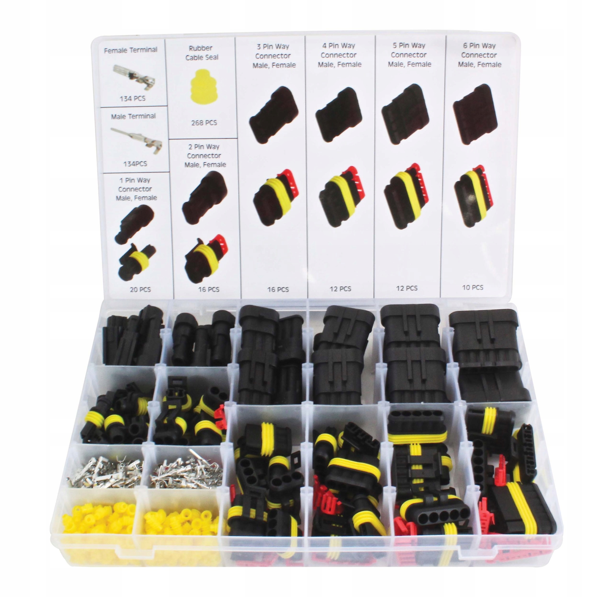 Набір з 1-, 2-, 3-, 4-, 5- та 6-контактних штекерних і гніздових компресійних роз’ємів, призначених для з’єднання внутрішньої проводки діаметром до 2,4 мм.
