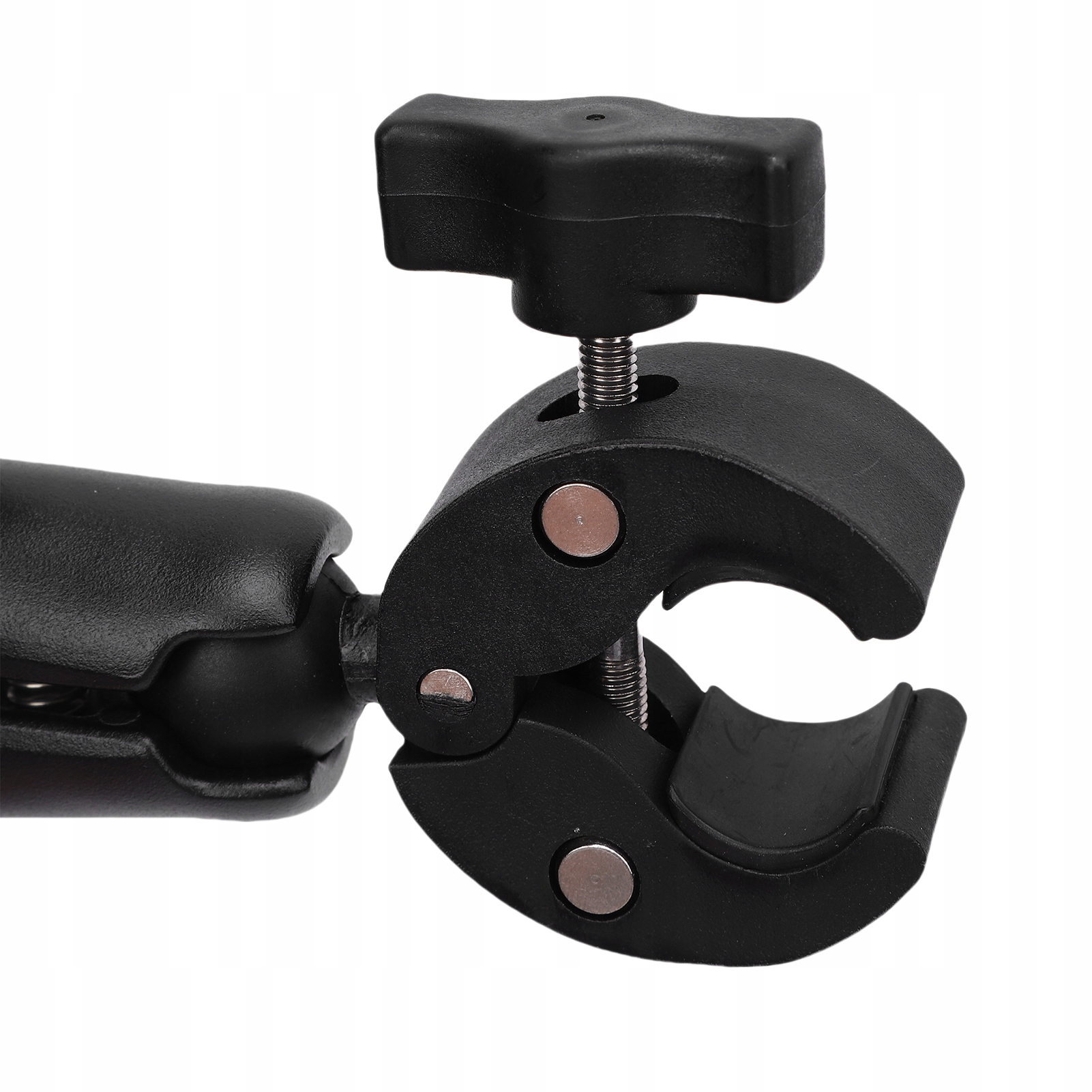 2. Система подвійного затискання: завдяки міцній системі подвійного затиску, тримач має тверді пластикові затискачі в поєднанні з металевими кронштейнами для надійного кріплення до стрижнів і трубок. Цей міцний затискний механізм забезпечує стабільне з’єднання селфі-палиць, встановлених у різних автомобілях.