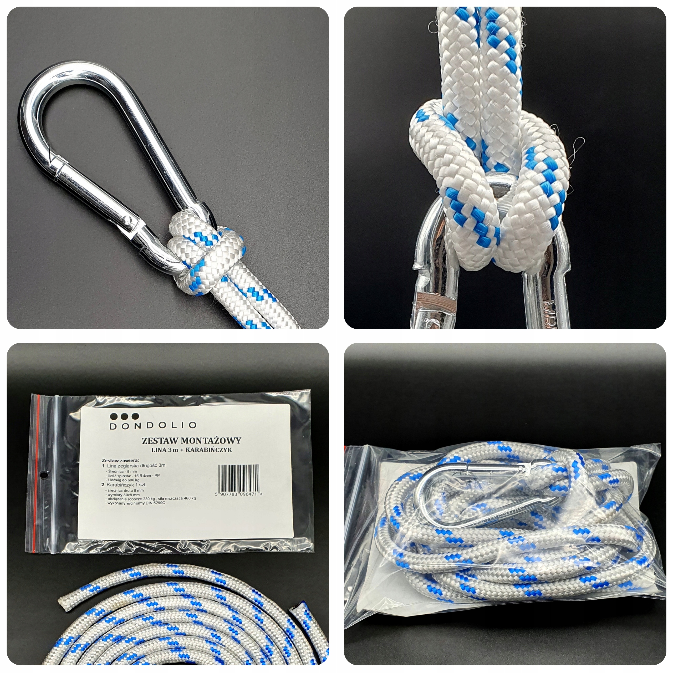 3 м карабінова мотузка для монтажу 8x80 для монтажних гойдалкових гамаків