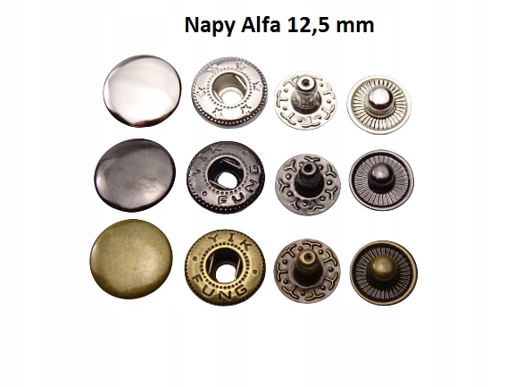 - Застібки Alfa: 10 мм, 12,5 мм, 15 мм,