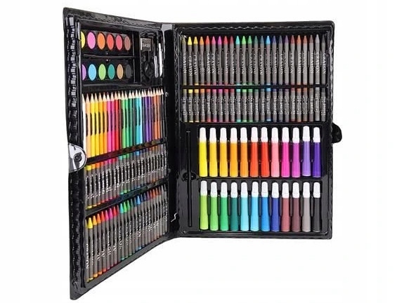 Набір упакований в естетичний чорний чемодан, що робить нашу пропозицію ідеальною в якості подарунка! Порадуйте себе або дитину, яка любить малювати🎁 b>
