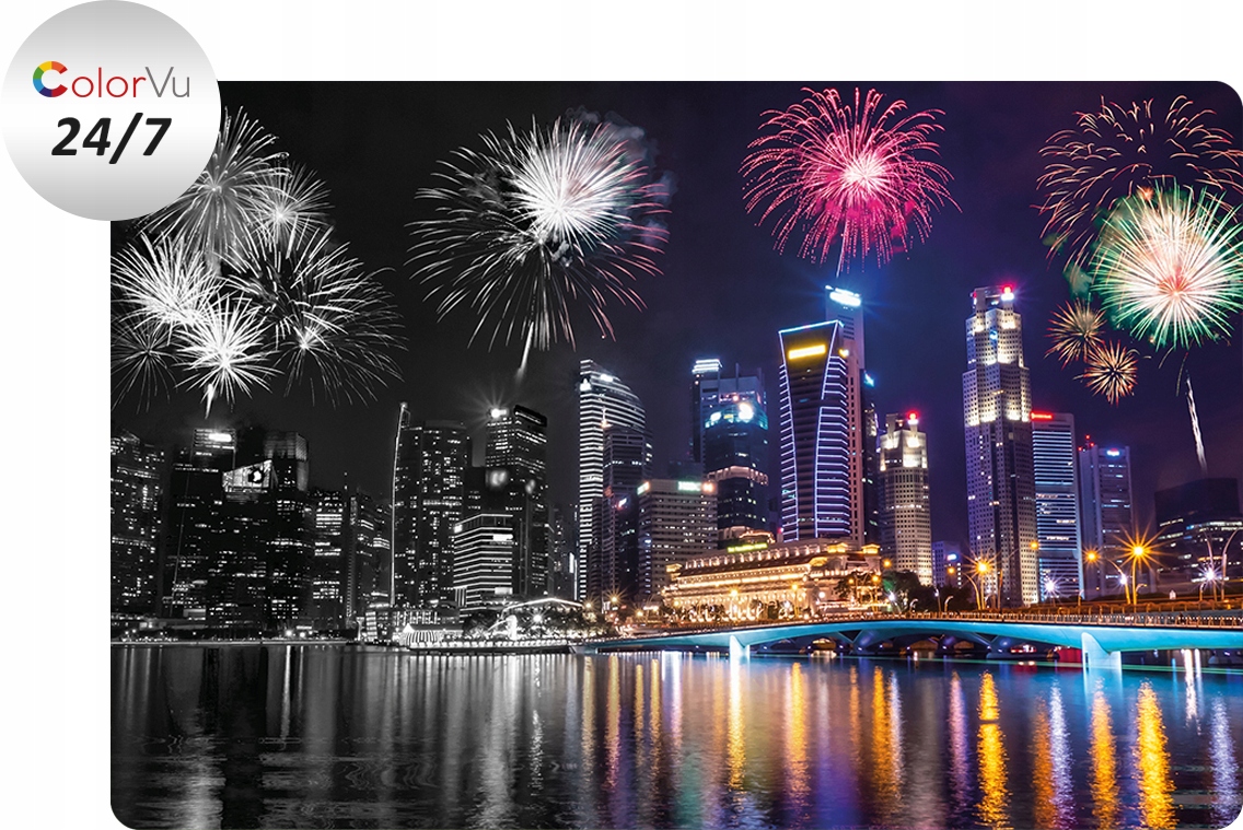 Камери ColorVu, на відміну від класичних камер спостереження, мають надчутливі датчики (0,001 люкс) і світлодіодні освітлювачі білого світла. Завдяки цьому вони дозволяють записувати набагато більше барвистих деталей без відблисків, які часто створюють стандартні інфрачервоні освітлювачі.