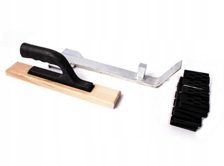 Високоякісний комплект, призначений для легкого та незалежного встановлення дощок і панелей для підлоги. У набір входять два дерев'яних блоки для нарізування і один металевий, який також служить важелем для притискання панелей до стіни. У придбаний набір входить набір із 40 пластикових монтажних клинів.
