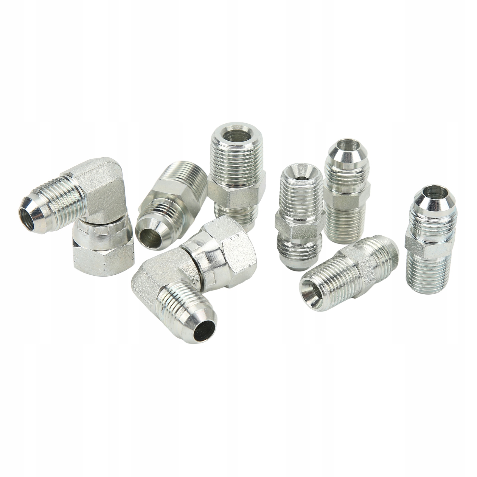 3. Аксесуари: Пакет включає 4 перехідники зі сталі AN 6 на 1/4 дюйма NPT, 2 адаптери зі сталі AN 6 на 3/8 дюйма NPT, 2 перевернуті на 90 градусів розвальцьові ковпачки AN 6 на AN 6.