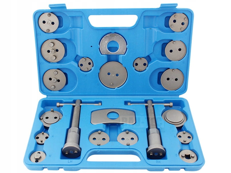 Опис товару: Професійний набір для реверсу - віджиму поршнів в циліндрах гальмівної системи, необхідний при ремонті автомобілів з дисковими гальмами. У комплекті є правий і лівий поворотні преси, ручки оснащені магнітними наконечниками, завдяки яким утримують на осі пластину, відповідну даному поршню. Набір підходить для більшості автомобілів на ринку.