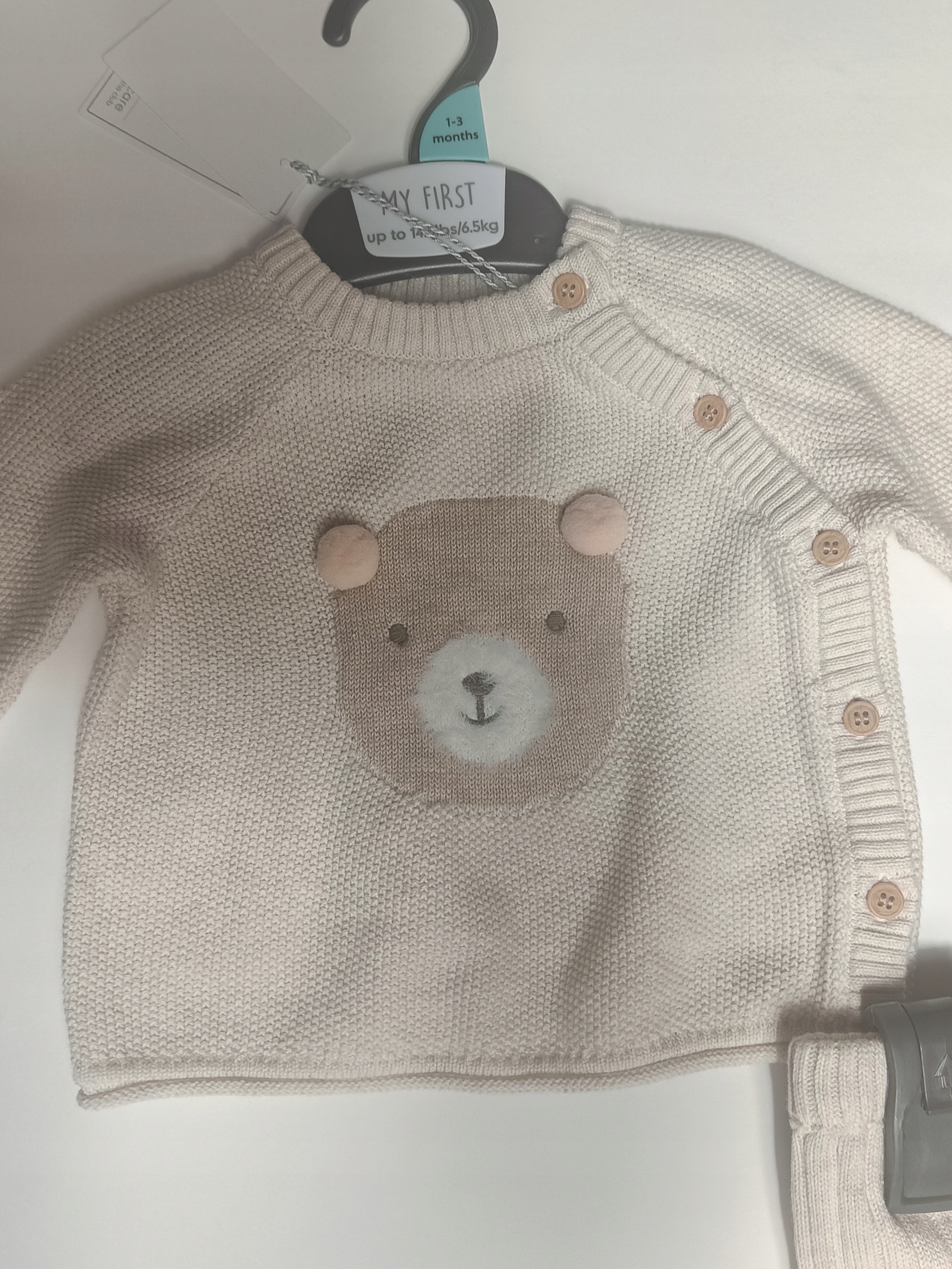 КОМПЛЕКТ ДЛЯ НОВОНАРОДЖЕНОГО ДЖЕМПЕР І ШТАНОЧКИ 1-3 МІСЯЦІ БЕЖЕВИЙ ВЕДМЕДИК ТЕДДІ
