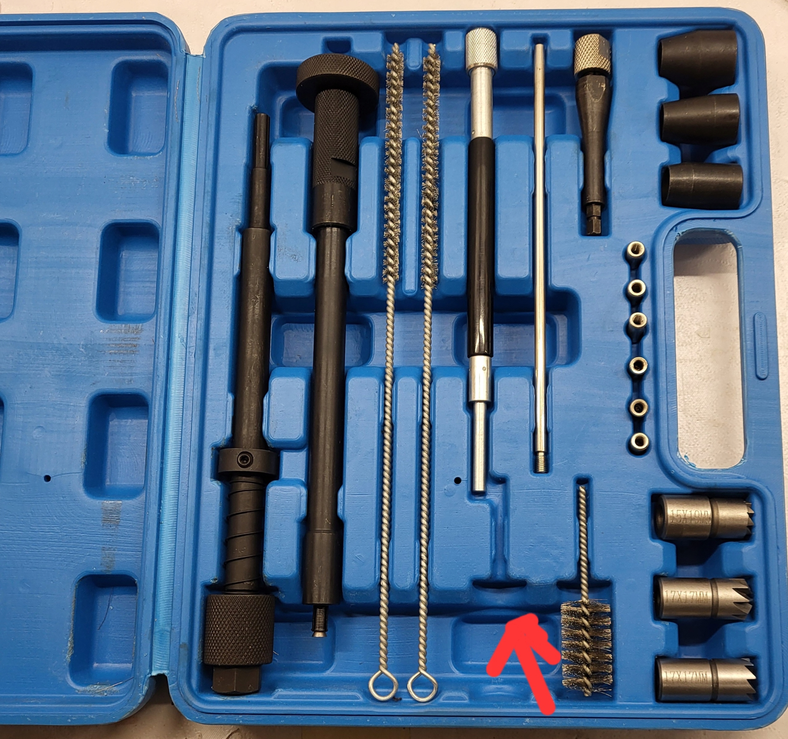 - 】 Наступні розміри: 3 конічні рукава для штифтів, що ведуть 17/18.4/19 мм, 3 різаки до розетки для інжектора, 4 чистки щітки, ручка пензля, 6 пробок, що ведуть до закриття валу голки насадки, з ручками для демонтажу та складання. Герметизація, тримач пензля, щоб розширити набори для очищення інжектора та накопичувача, наконечник: пензлик використовується лише відповідно до руху за годинниковою стрілкою. Peugeot, Renault та Mercedes-Benz