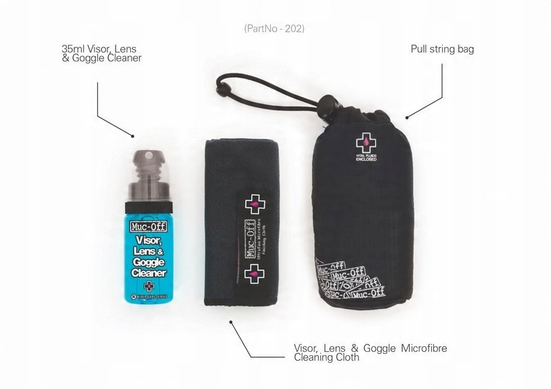 КОМПЛЕКТ ДЛЯ ОЧИЩЕННЯ ВІЗОРА ТА ОЧИКУ MUC-OFF 35 МЛ