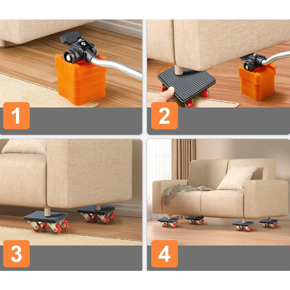 КОМПЛЕКТ ДЛЯ ПЕРЕСУВАННЯ МЕБЛІВ 500КГ 4 РОЛИКОВІ ПІДЙОМНИКИ