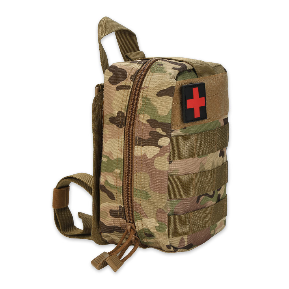 Наш комплект першої допомоги має ремінь на задньому плані, який підходить для тактичного рюкзака, тактичного жилета, ременя різної ширини тощо. Корисний мішечок використовується військовим персоналом, терміновими випадками, поліцією, пожежними та відповідальними цивільними як легкодоступним та необхідним елементом надання першої допомоги.