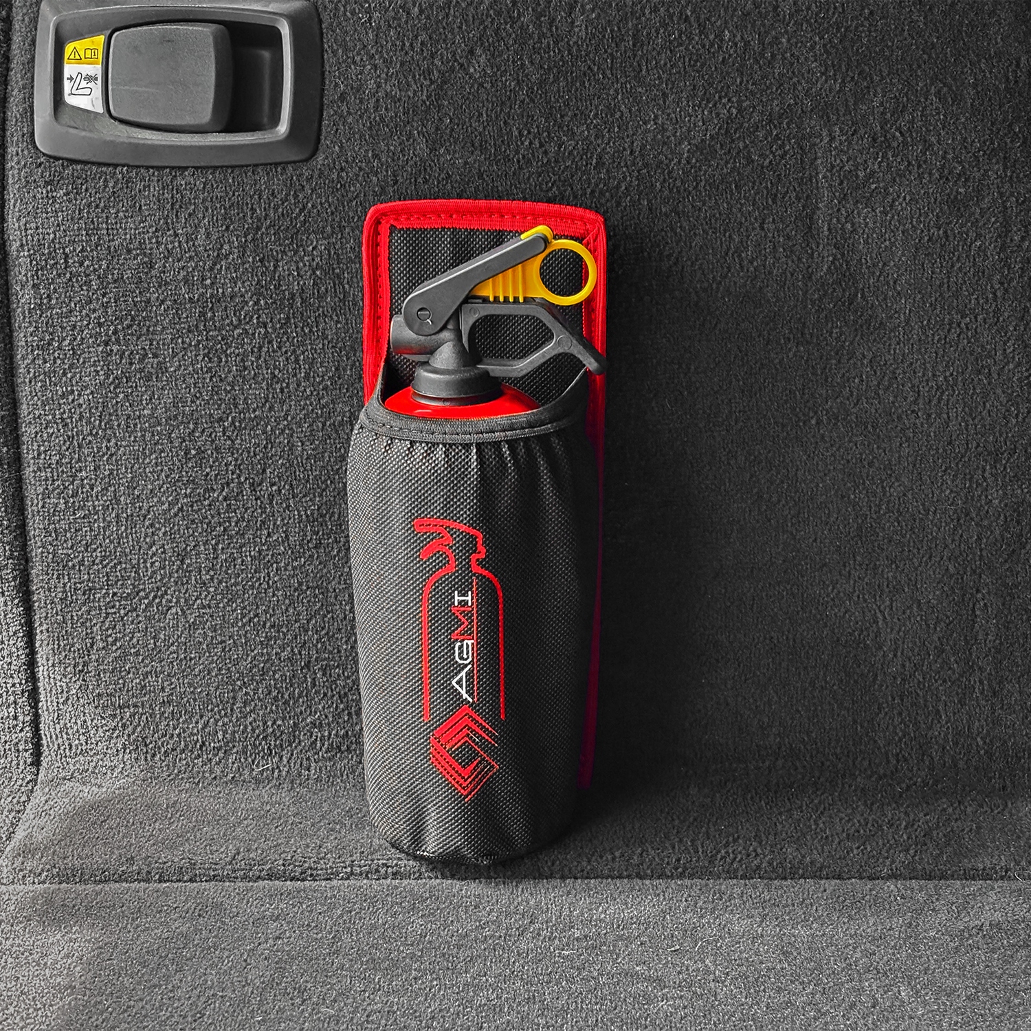 Завдяки нашій ручці ви можете безпечно транспортувати вогнегасник у багажнику автомобіля! Сильна липучка означає, що вогнегасник утримується впевнено і не рухається в багажнику!
