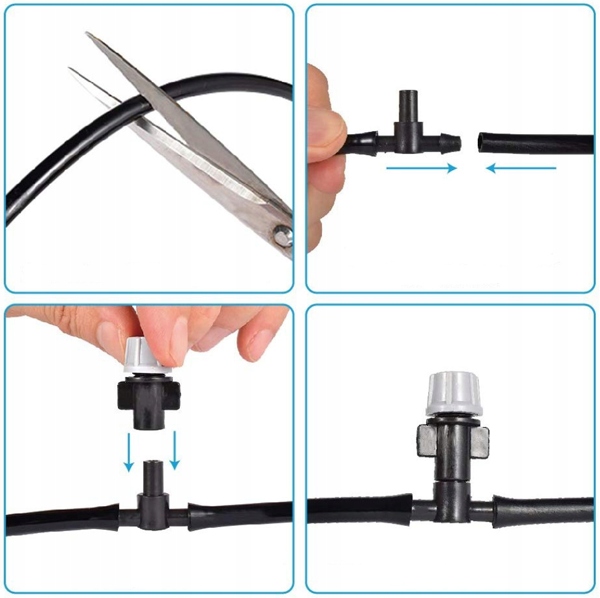 Шланг можна розрізати до будь-якого розміру та підключити до спринклера за допомогою конекторів. Завдяки цьому рішенню ви можете регулювати ширину між соплами відповідно до ваших потреб.