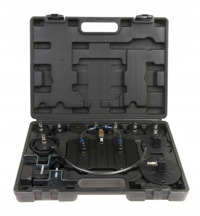 - В набір входить 8 шт перехідників для бачка гальмівної рідини, 3 шт універсальних перехідників, контейнер для використаної гальмівної рідини зі шлангом і гумовий перехідник.