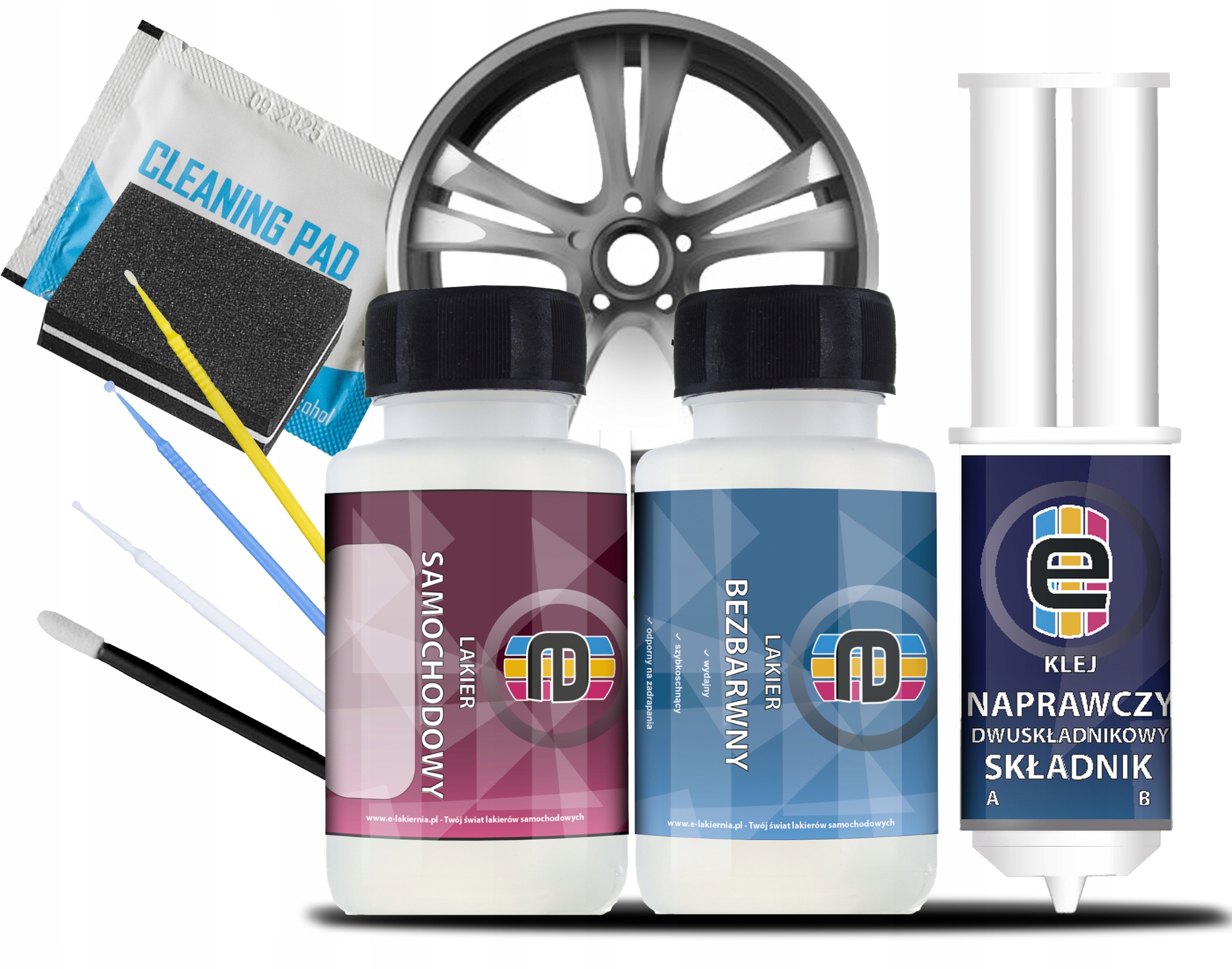 Ремонт RIM за допомогою клею електронного лайдера слід запустити з ретельного очищення пошкодженого місця. Поверхня повинна бути знежирена і видаляти весь бруд, лак -залишки, пухкий матеріал та корозію, бажано наждачним папером. Після підготовки ободу до ремонту змішайте відповідні пропорції клей у співвідношенні 1: 1. Після отримання однорідної маси її слід рівномірно застосовувати до пошкодженої області, ретельно заповнюючи всі дефекти. Після застосування залиште клей на повне затвердіння - час сушіння зазвичай становить близько декількох хвилин. Після затвердіння клею зачіпте зайвий матеріал наждаком, вирівнюючи відремонтований фрагмент до рівня решти поверхні обода. Таким чином, RIM механічно ремонтується та готова до подальших оздоблювальних робіт. Спосіб застосування лаку такий же, як у випадку з тілом.