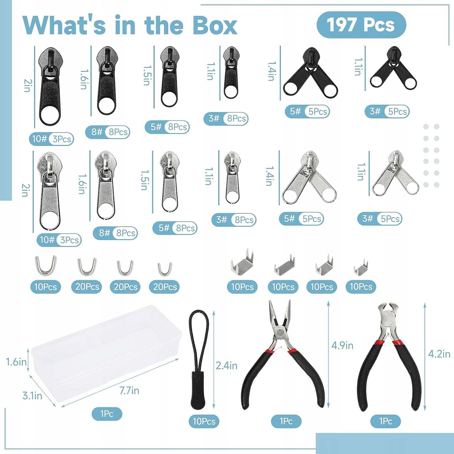 Комплект для ремонту для ремонту Zippers Metal 197 PCS