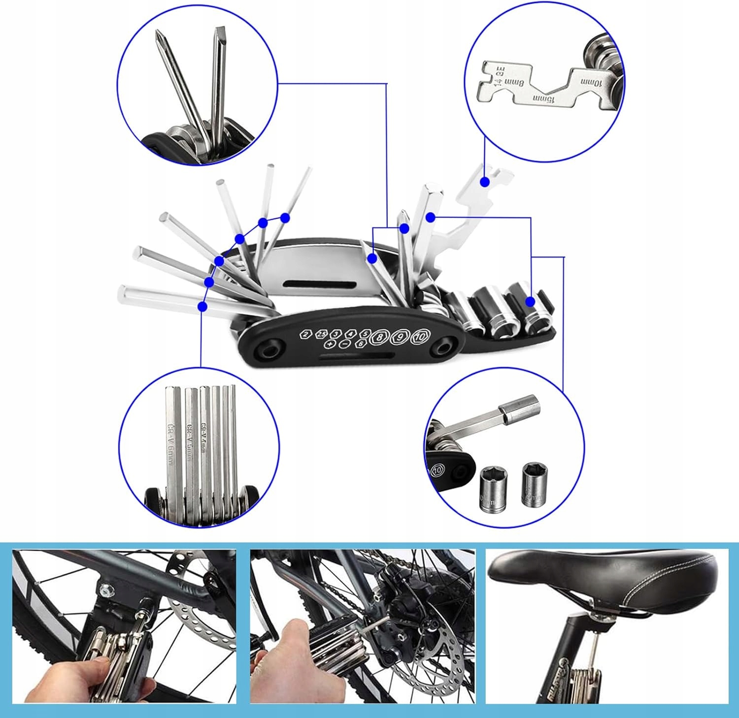 🚲🚲 Усі інструменти можна вставити в робочий мішок і прикріплений до велосипедного сідла під час подорожі. Їх також можна використовувати окремо як щоденний інструмент для ремонту домогосподарств.