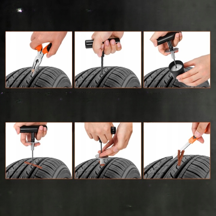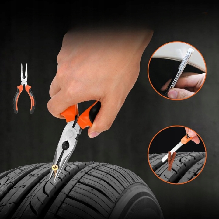 kohree repair kit for treading tires is a professional and versatile solution for quick removal of small faults in car tires, motorcycles, trucks, road vehicles, road vehicles, road vehicles, road vehicles, Дорожні транспортні засоби, дорожні транспортні засоби, дорожні транспортні засоби косарки або причепи. Набір дозволяє відремонтувати пункцію вдома та в надзвичайних ситуаціях на дорозі, без необхідності розбирати шину та використовувати допомогу майстерні.