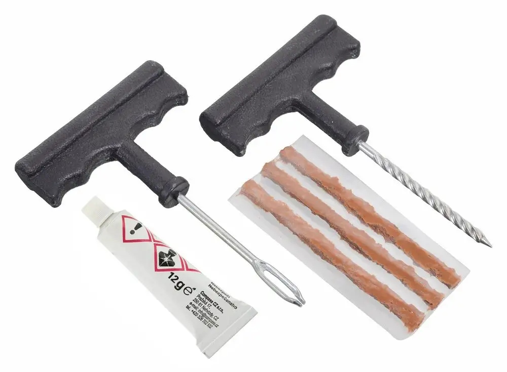 Встановити для швидкого ремонту безбезафікових шин без необхідності зняти покриття з диска. Цей набір підходить як для автомобілів, так і для мотоциклів, квадроциклів та інших безкримових шин.