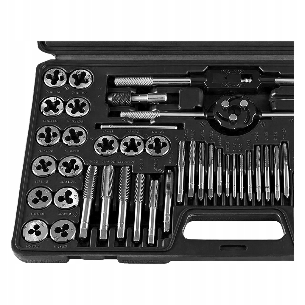 - 10 Narzynek: M3 × 0,5, M4 × 0,7, M5 × 0,8, M6 x 1,0, M7 × 1,0, M8 × 1,25, M9 × 1,25, M10 × 1,5, M10 × 1,0, M12 × 1,75