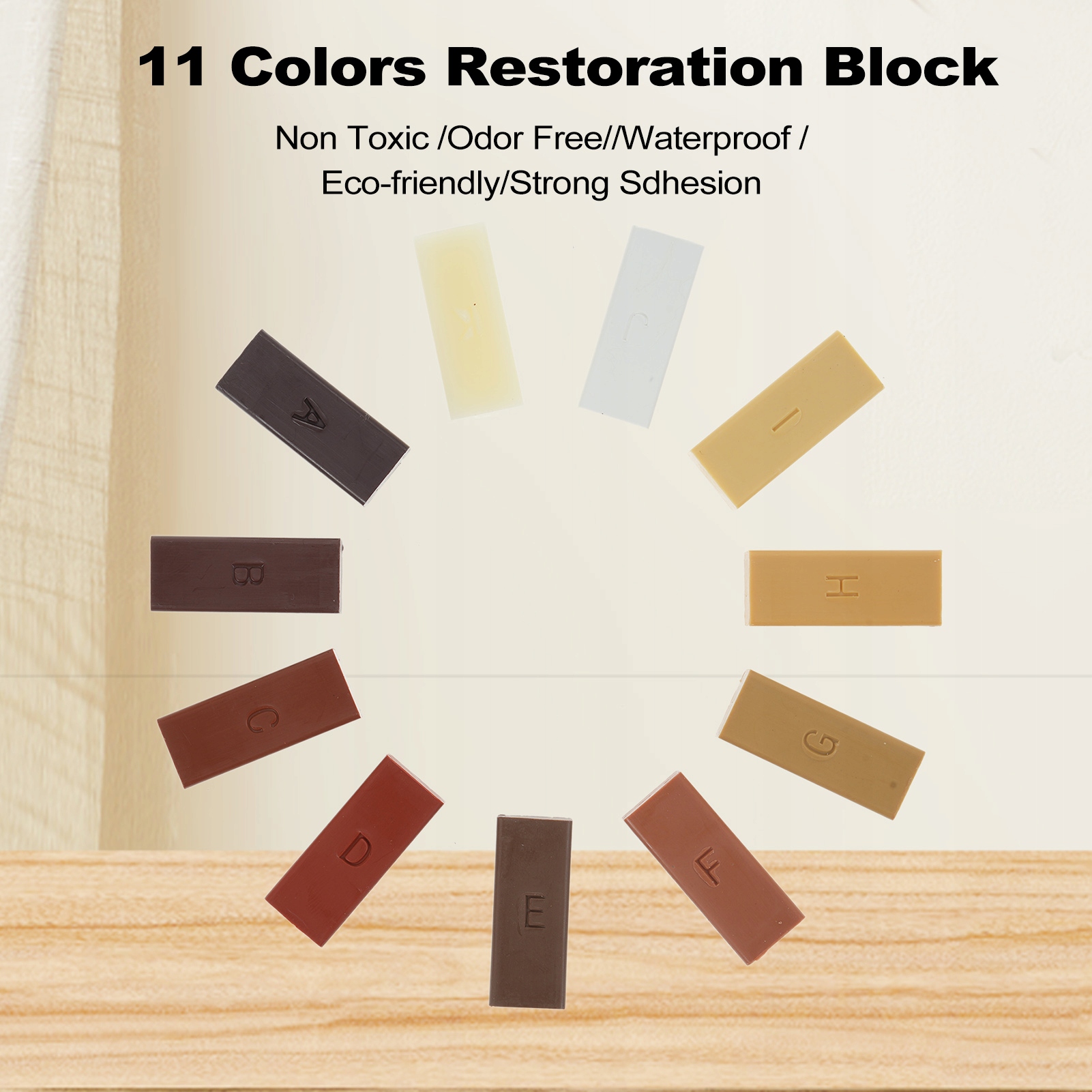 3. 【11 кольорових наборів для ремонту деревини】Набір для ремонту вінілової підлоги включає 11 кольорів деревини та 5 кольорів меблів для ретушування маркерів, якщо кольори не збігаються з деревиною шляхом змішування кольорів, набір для ремонту меблів для підлоги своїми руками.