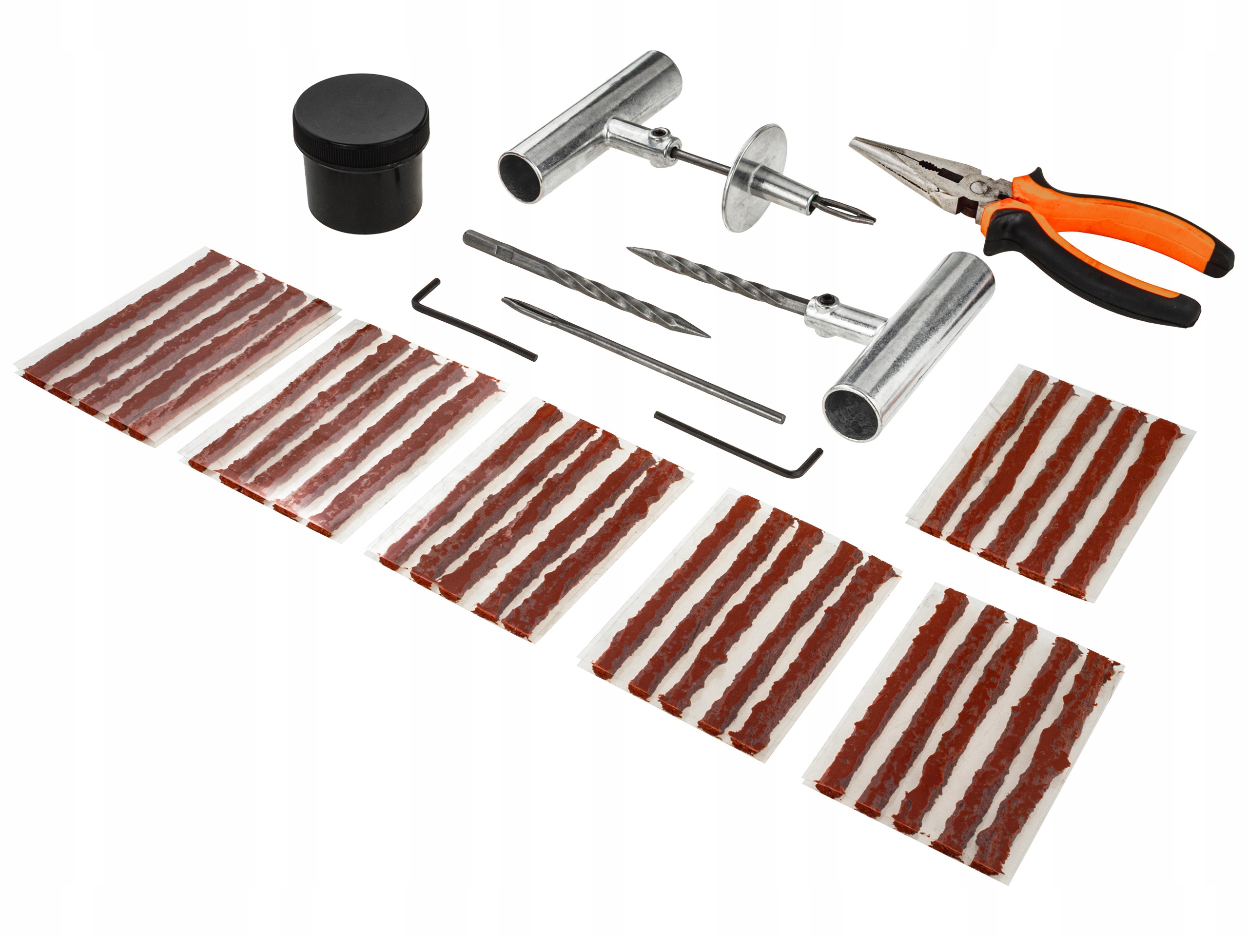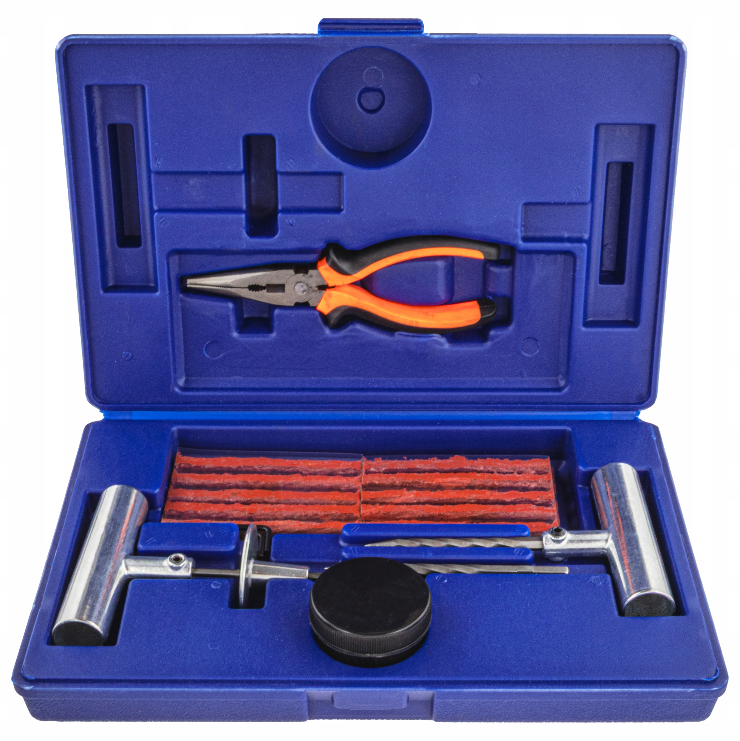 ⭐przenośny Zestaw naprawczy do opon, który pozwala na samodzielną i szybką naprawę przebitej opony bez konieczności jej demontażu. Ціле упаковане в міцну, зручну валізу, виготовлену з міцного пластику - ідеально підходить для зберігання автомобіля або гаража в сховищі.