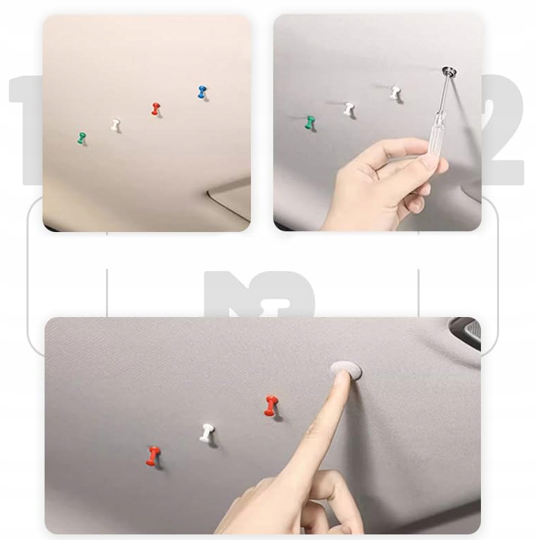 - 100x Світло -сірий кнопка хедлайнера: Кнопка виготовлена з міцного матеріалу, діаметром 1,9 см. Ідеально підходить для стабілізації хедлайнера та запобігання його.