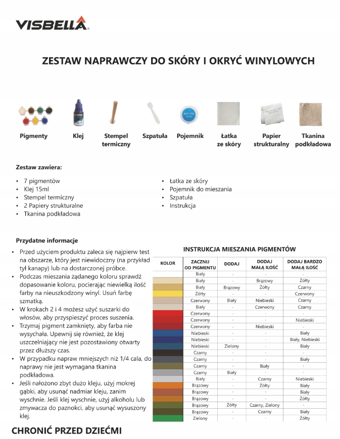 Просматривая «КОМПЛЕКТ ДЛЯ РЕМОНТУ ЗАДНЬОГО ОТВОРУ VISBELLA», вы можете быть уверены, что данный товар из каталога «Восстановление кожи» будет доставлен из Польши и проверен на целостность. В цене товара, указанной на сайте, учтена доставка из Польши. Внимание!!! Товары для Евросоюза, согласно законодательству стран Евросоюза, могут отличаться упаковкой или наполнением.
