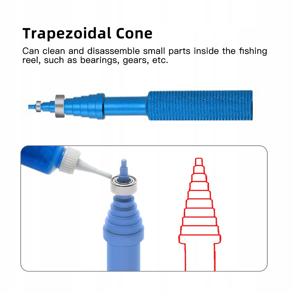 3. Трапецоїдальний конус може очистити і демонтувати невеликі деталі всередині рибальської котушки, наприклад, підшипники, передачі тощо