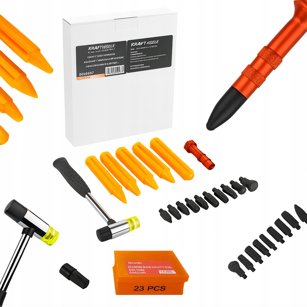 - наконечники з листового металу - це дозволяє інструменту точно регулюватись на конкретні вм'ятини, що збільшує універсальність використання. 4 Змінні поради можна легко прикріпити як до побитого, так і безпосередньо до молота, що значно підвищує комфорт та ефективність роботи.