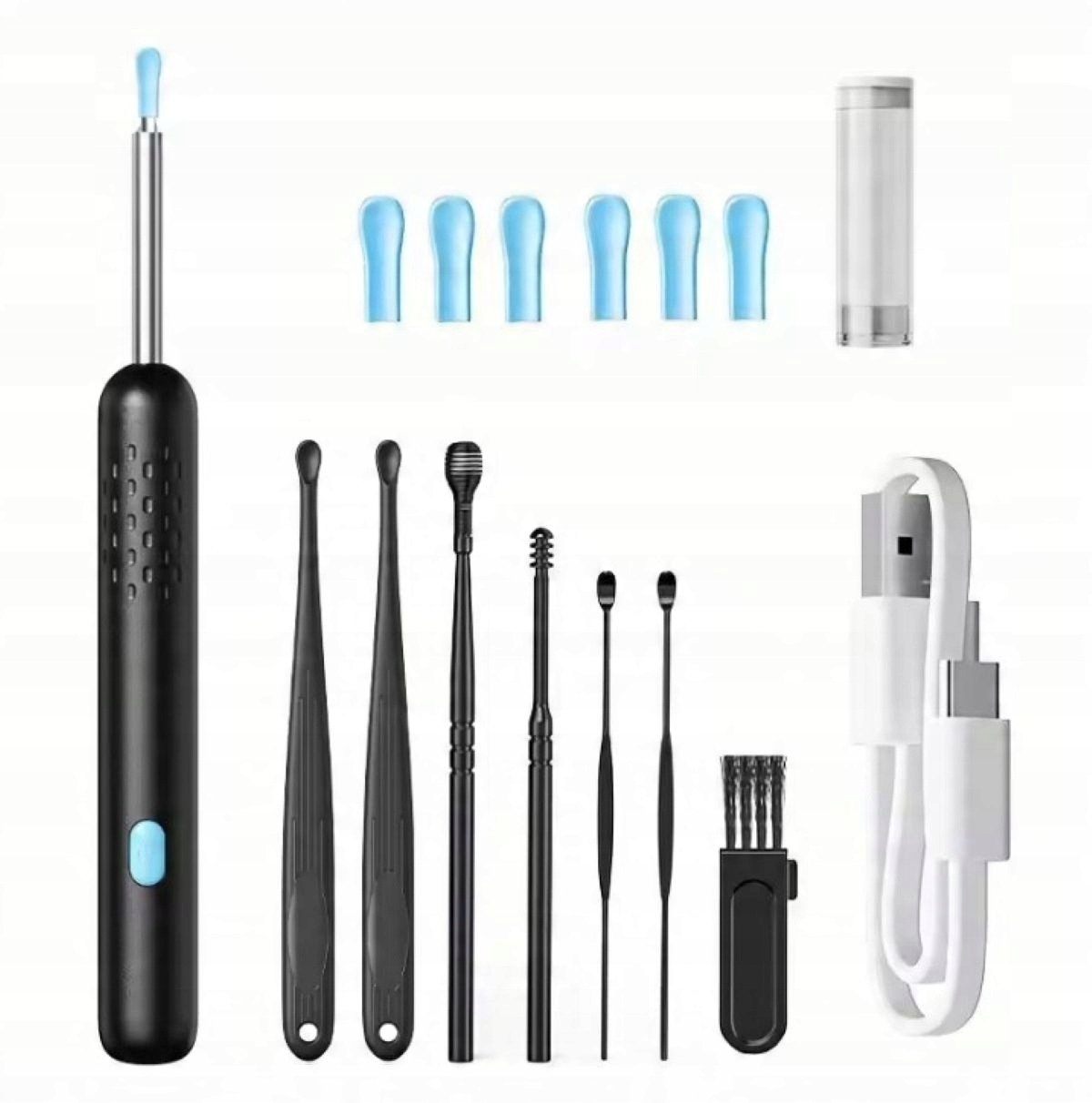 інтегрована конструкція: металева ложка для очищення вух інтегрується з основним корпусом.