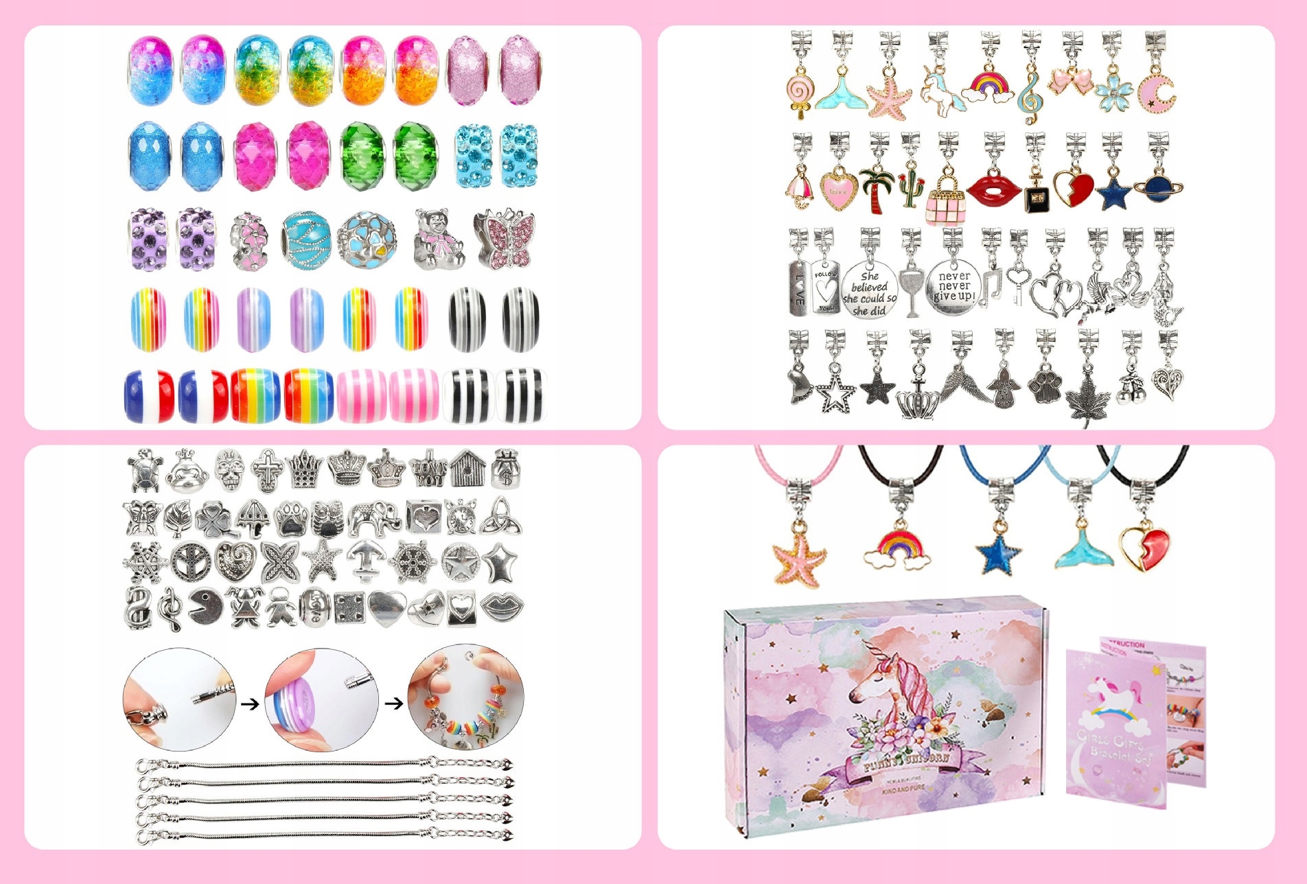 - Різноманітні намистини: ці намистини — це красиві веселки, корони, крила ангела, русалки тощо.