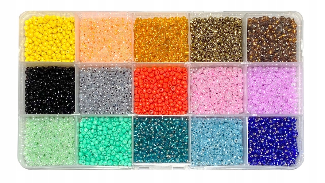 Насіння скляних намистин 3 мм - 15 кольорів, приблизно 15 грам у кожному відділенні