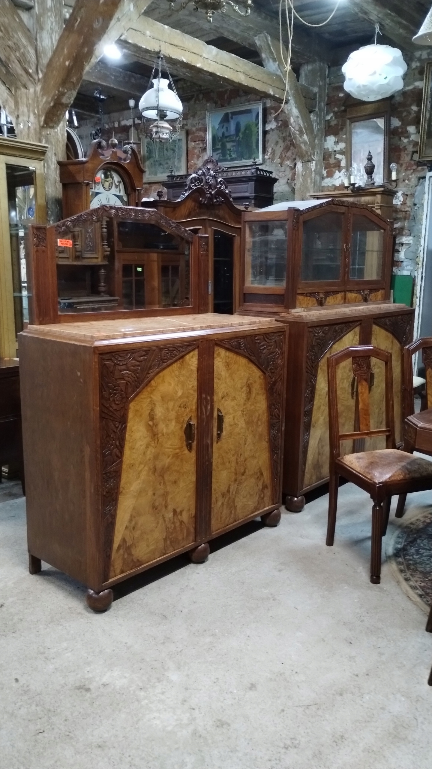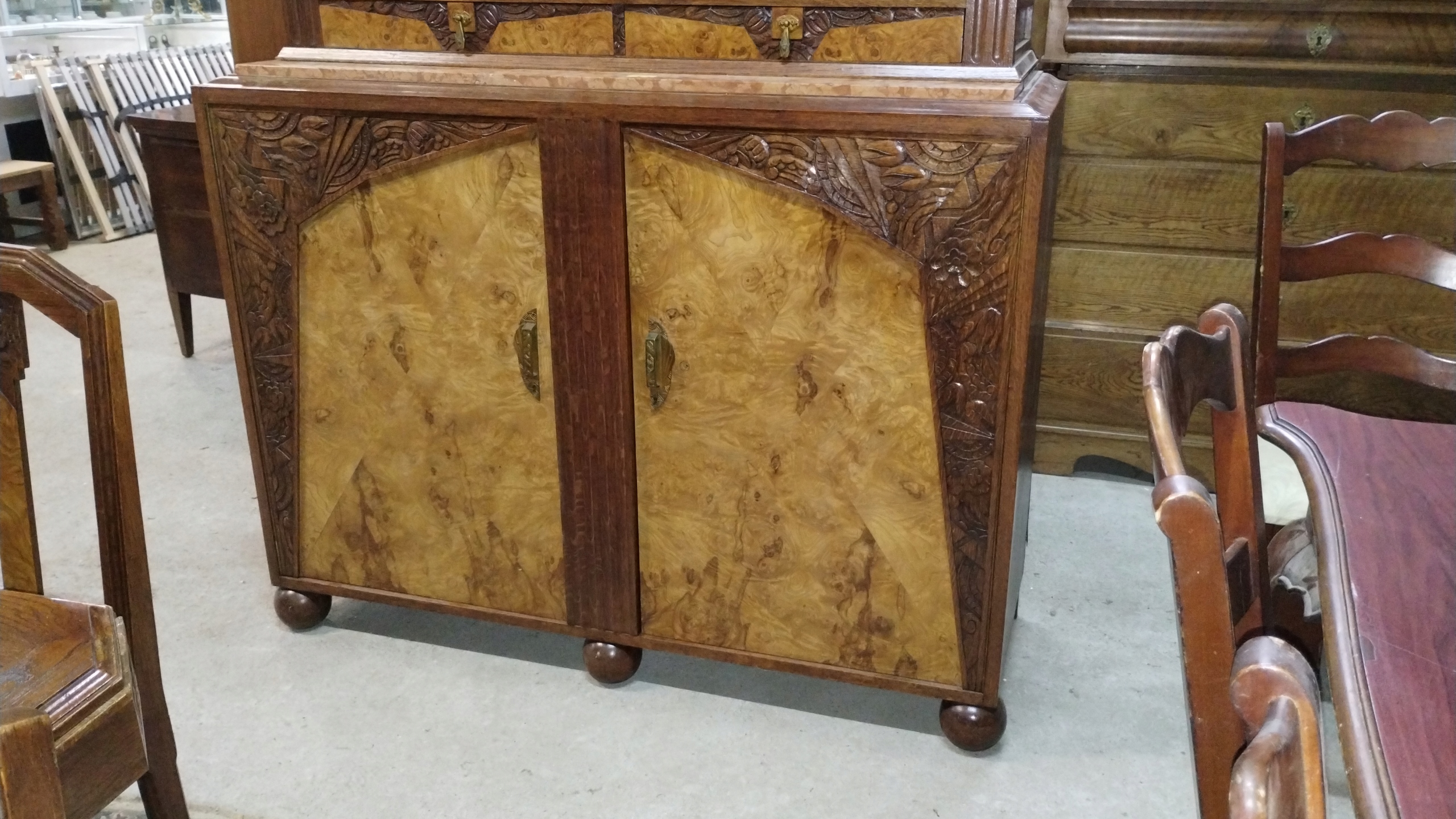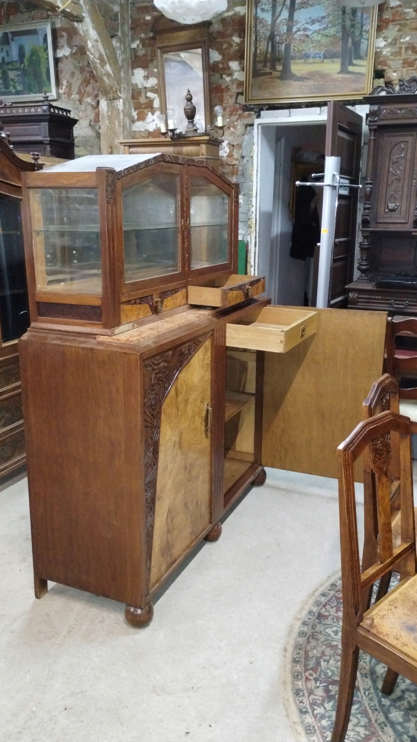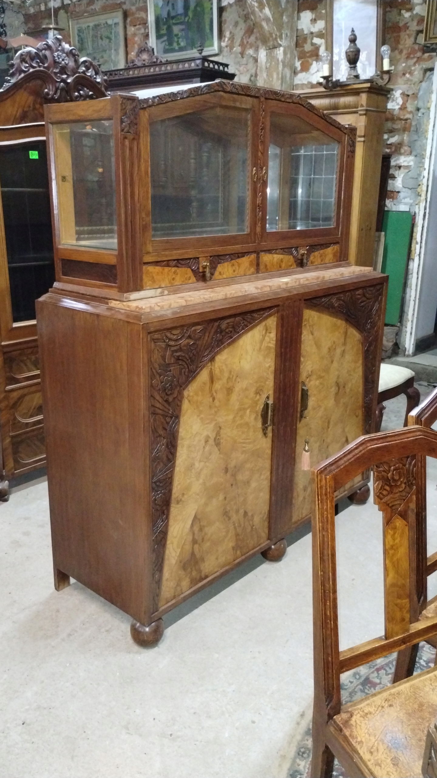 Комплект для вітальні, їдальні, арт-деко Франція, 1920-30 рр., комод, вітрина, стіл, стілець.